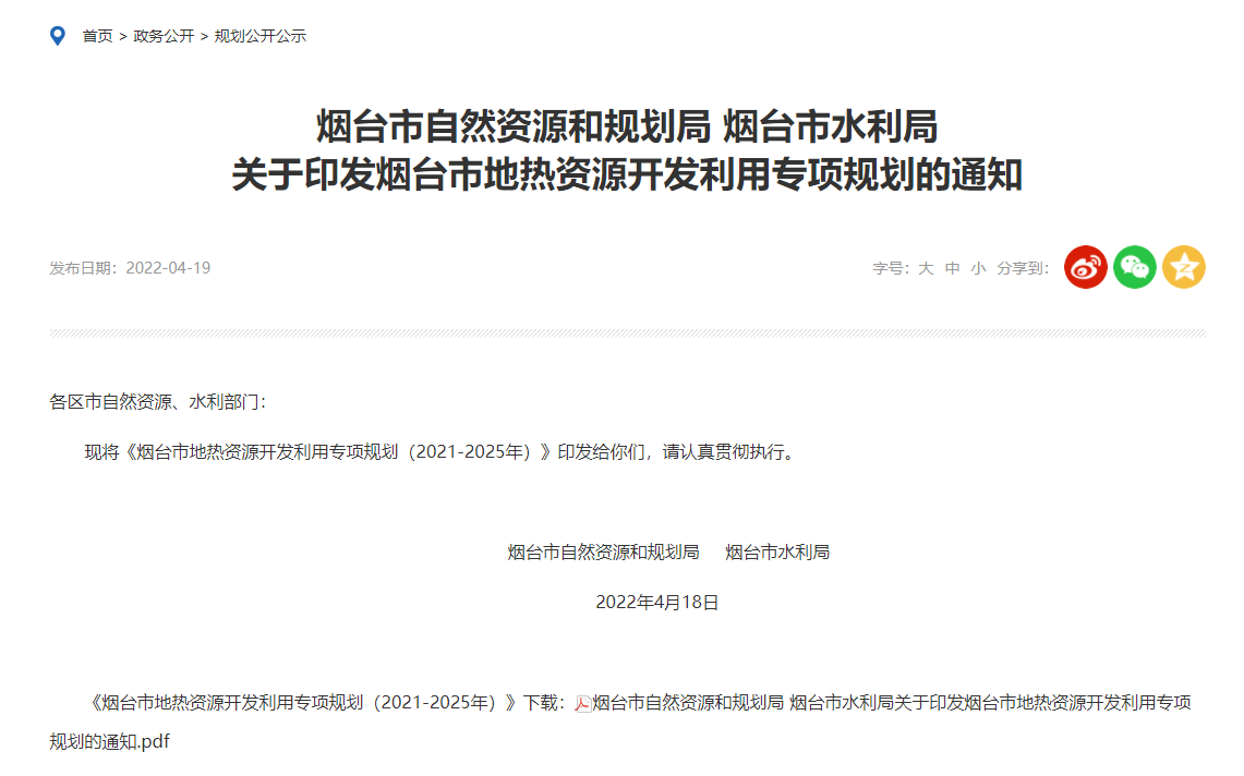相關(guān)閱讀:山東煙臺(tái)對(duì)外公示地?zé)崮軐m?xiàng)規(guī)劃 明確四大任務(wù)