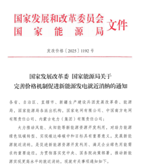關于公開征求《關于貫徹發改價格〔2025〕1192號文件進一步明確新能源就近消納價格政策有關事項的通知(征求意見函)》意見建議的公告
